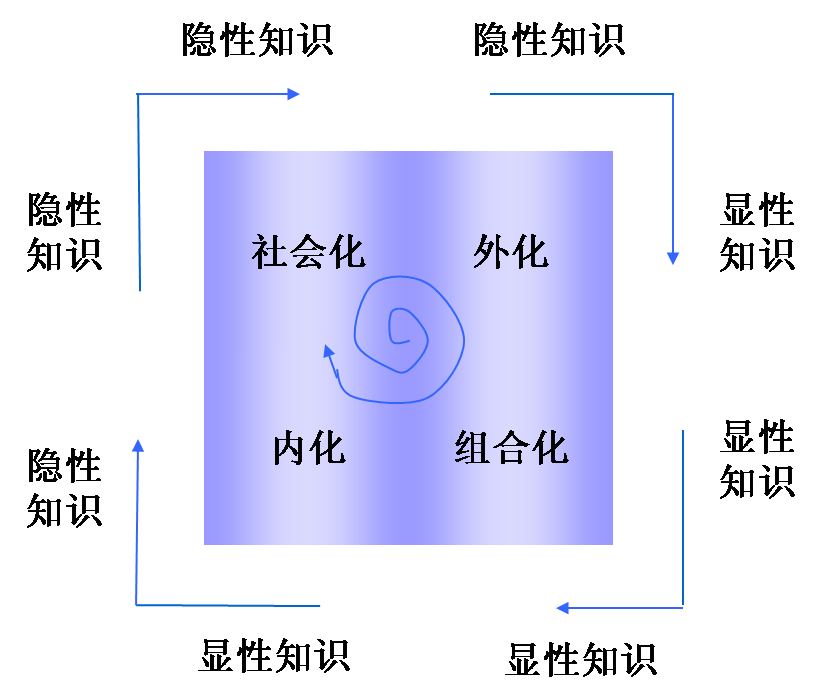 企业知识管理的核心是隐性知识的显性化,隐性知识的价值必须通过与显性知识的转化来实现,这也正是企业创新本质。企业内的知识正是通过这种循环转化而形成了一个螺旋上升的知识创新过程,主要是四个循环阶段: